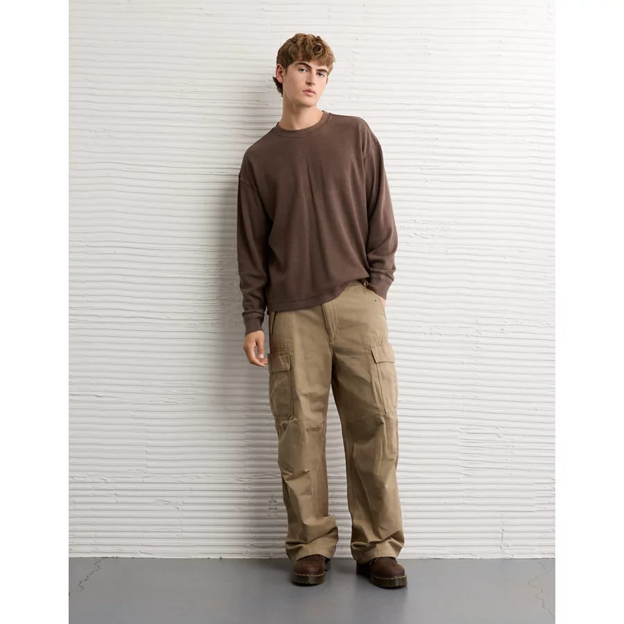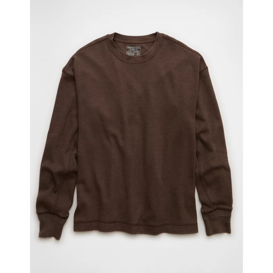 AE Boxy Washed Thermal Shirt – Dark Brown