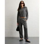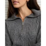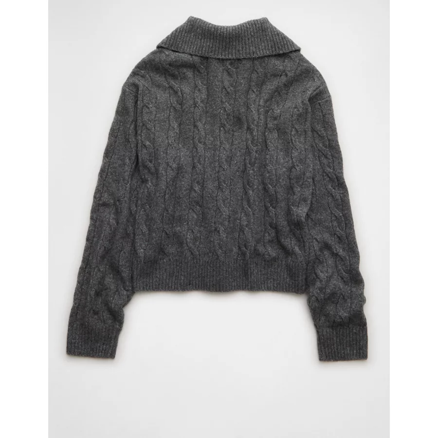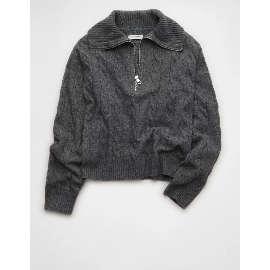 AE Cable-Knit Quarter-Zip Sweater – Charcoal Heather Gray