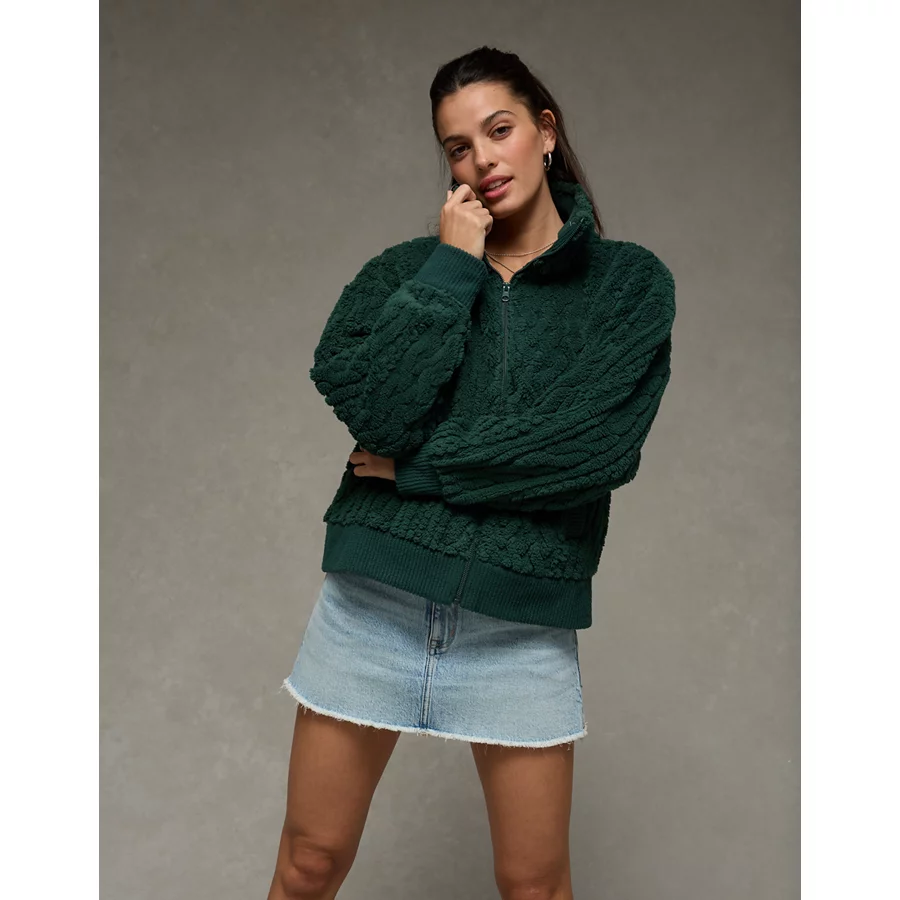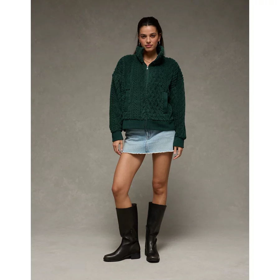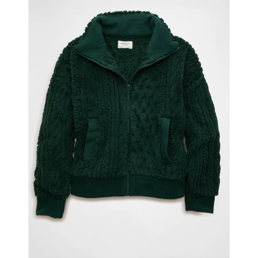 AE Cable Sherpa Full-Zip Sweatshirt – Deep Forest