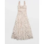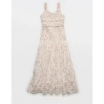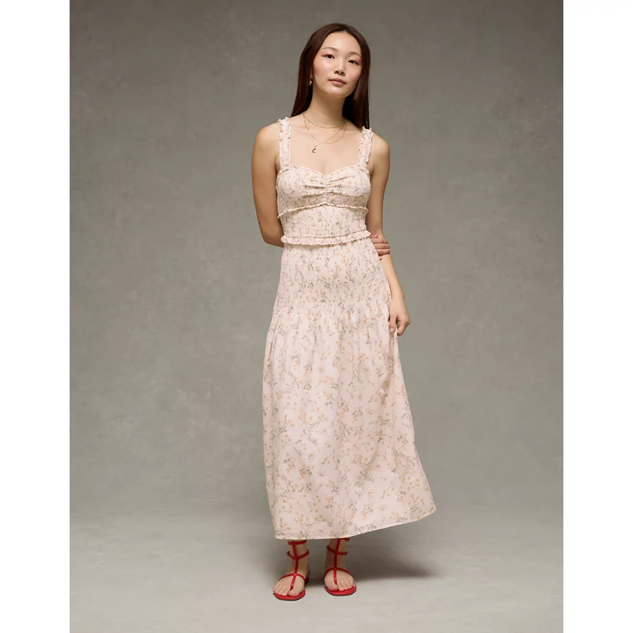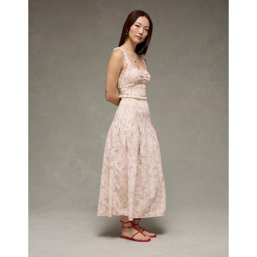 AE Catie Corset Smocked Floral Midi Dress – Cream