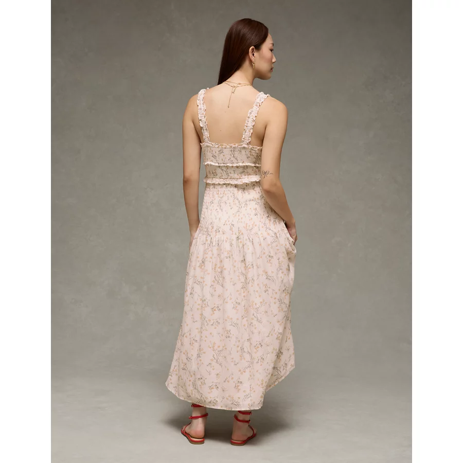 AE Catie Corset Smocked Floral Midi Dress - Floral