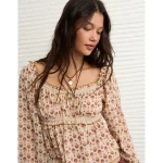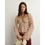 ABO Snoopy Skier Print Plush PJ Top – Blue