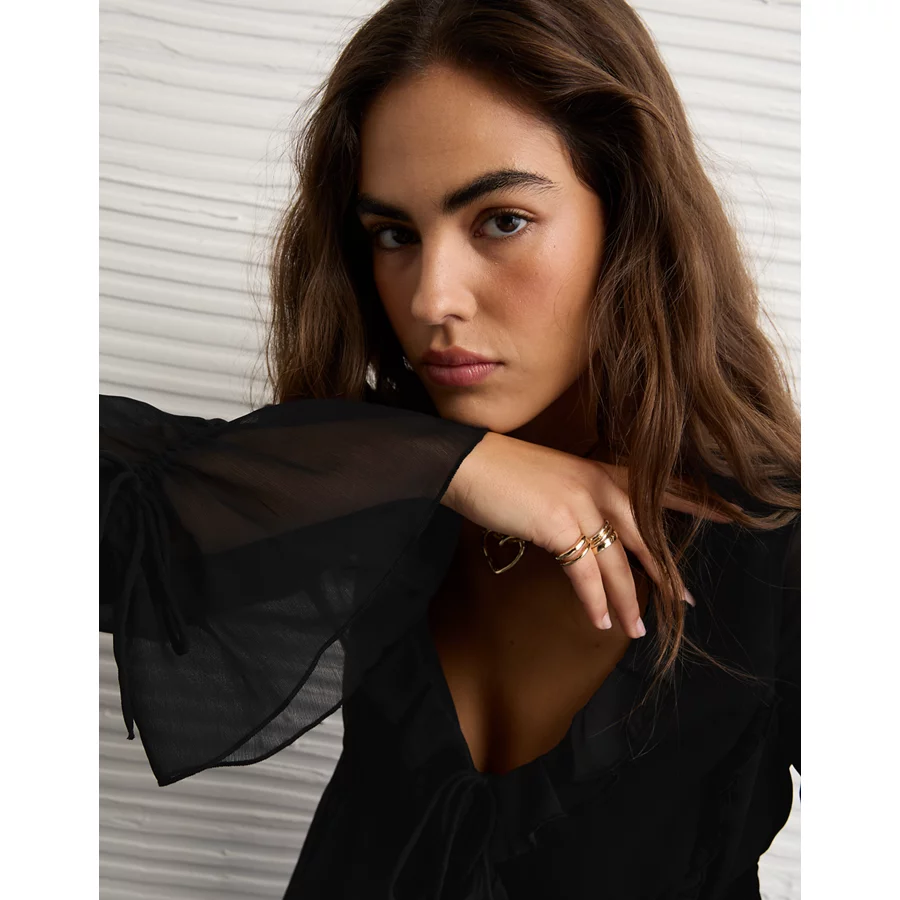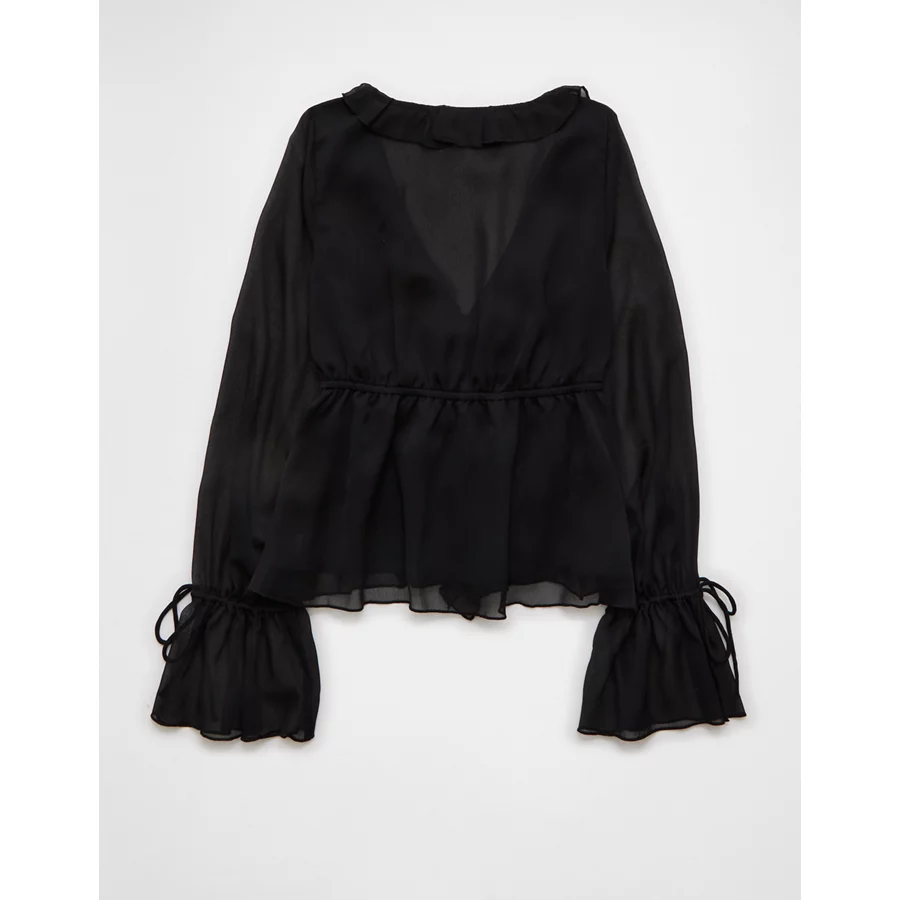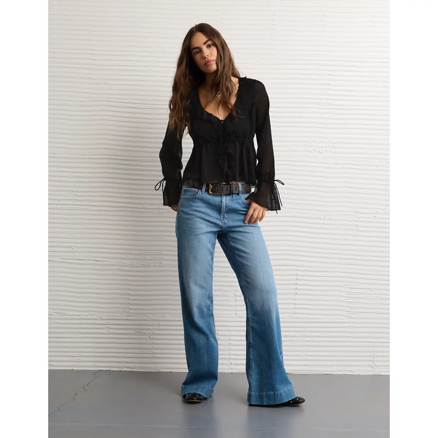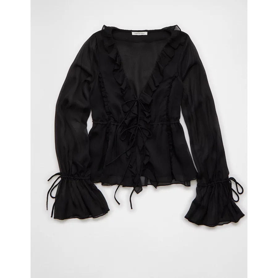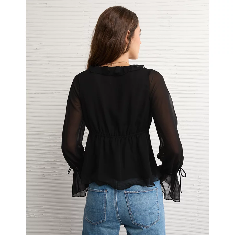 AE Chiffon Tiered Ruffle Tank Top - Light Blue