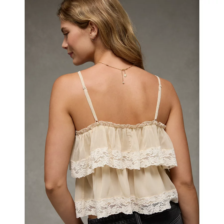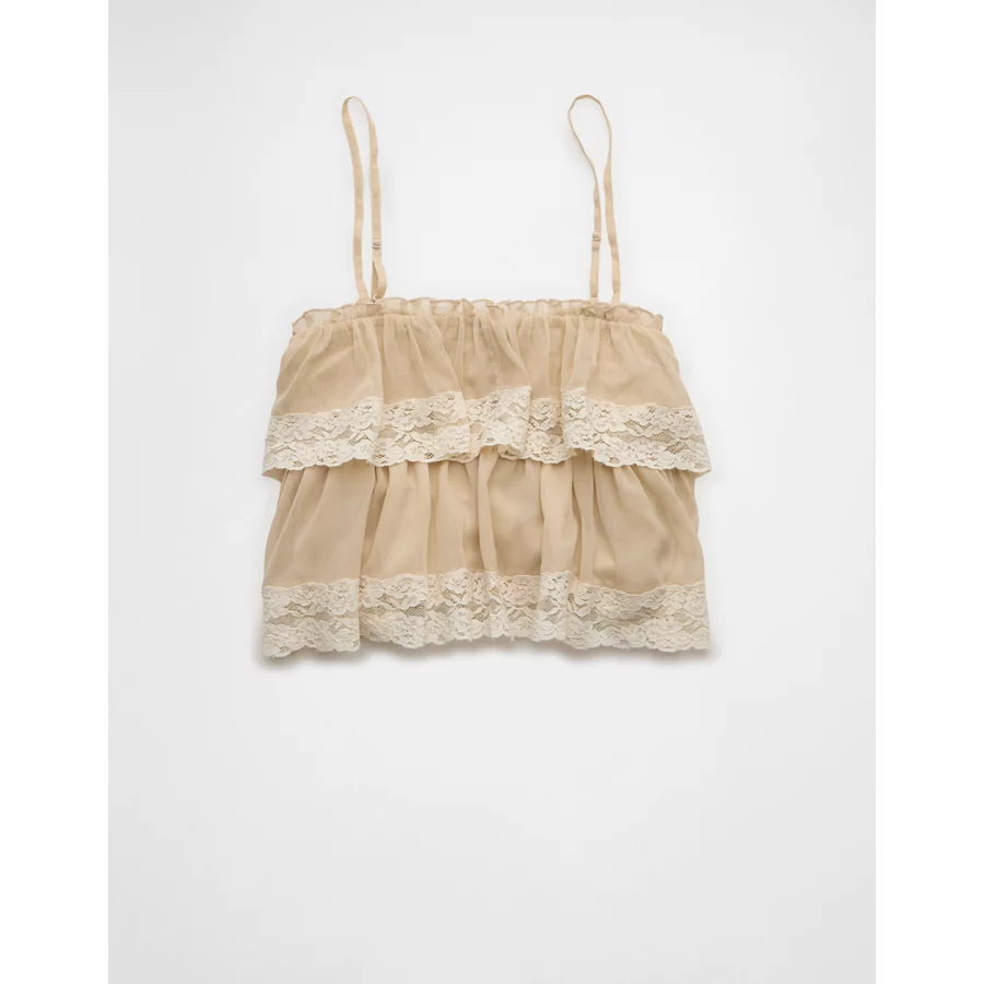 AE Chiffon Tiered Ruffle Tank Top – Light Khaki