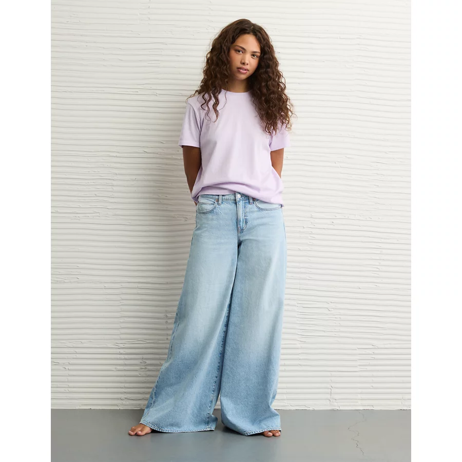 AE 8″ Dreamy Drape Stretch Low-Rise Baggy Jort – Medium Bright Indigo