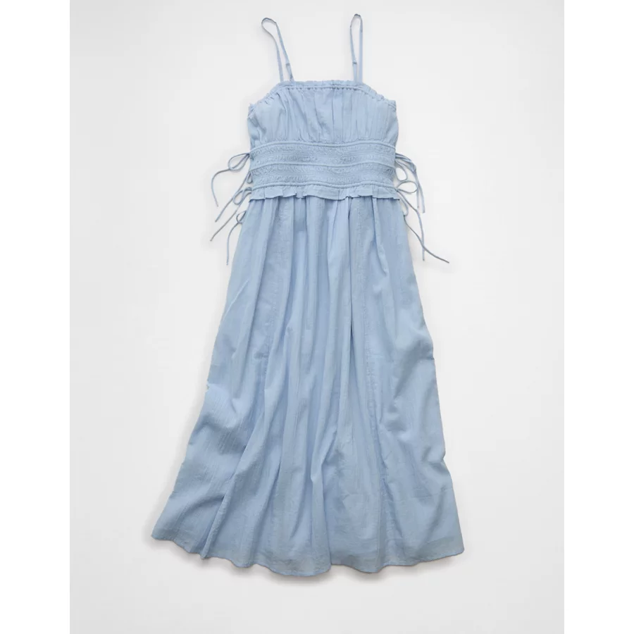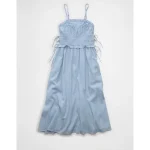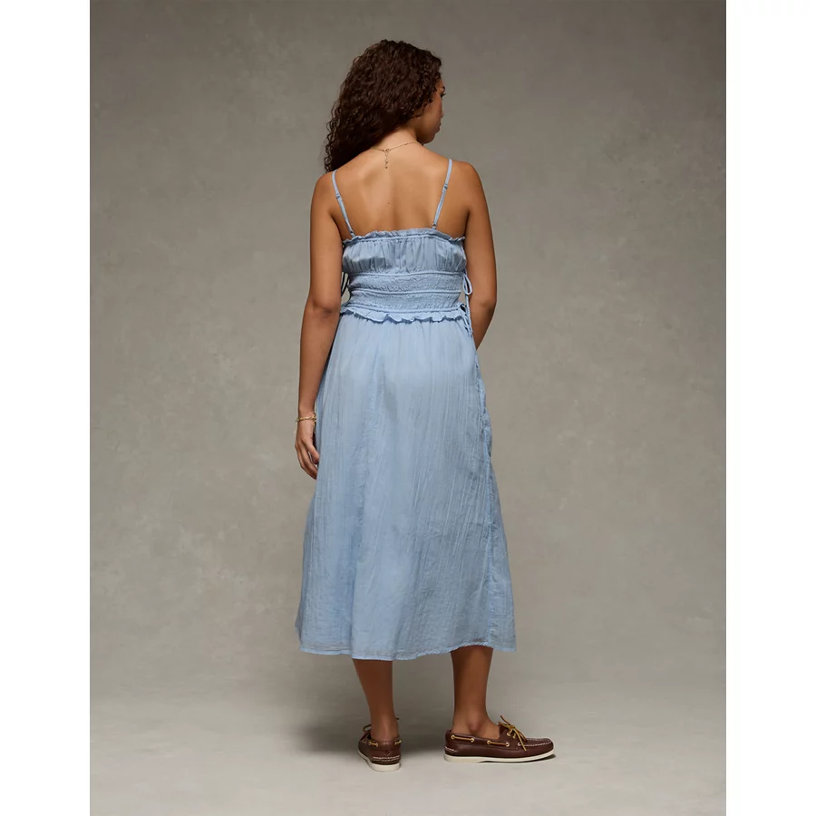AE Asymmetrical Ruffle Maxi Slip Dress – Blue