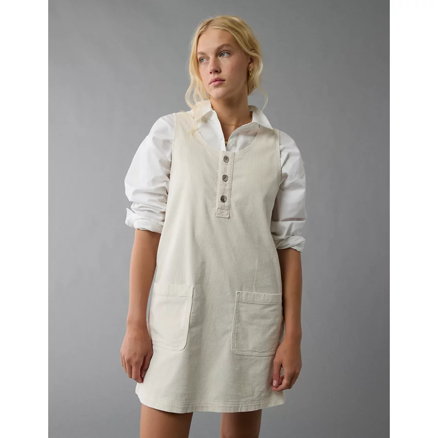 AE Corduroy Pinafore Mini Dress – Cream