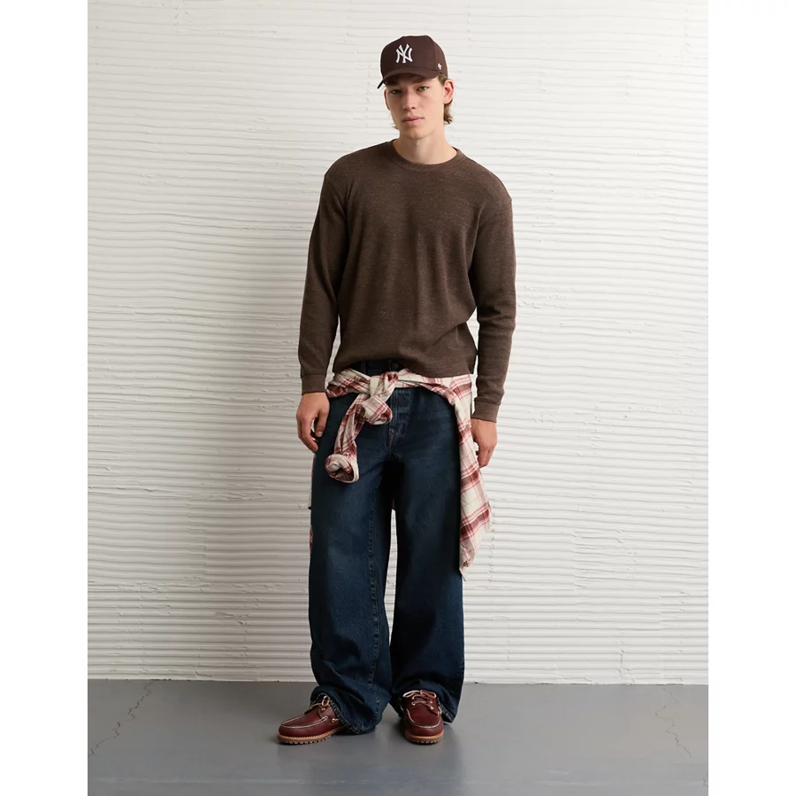 AE Cozy Waffle Thermal T-Shirt – Dark Brown