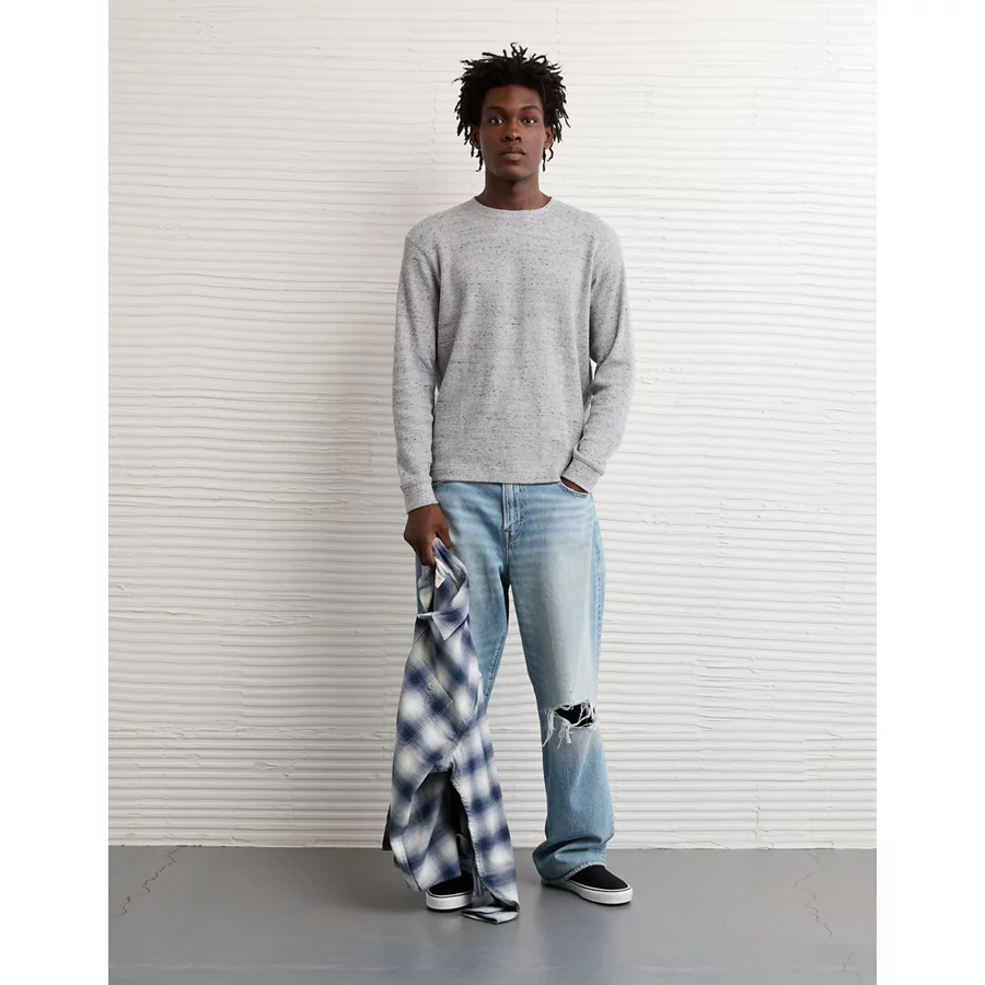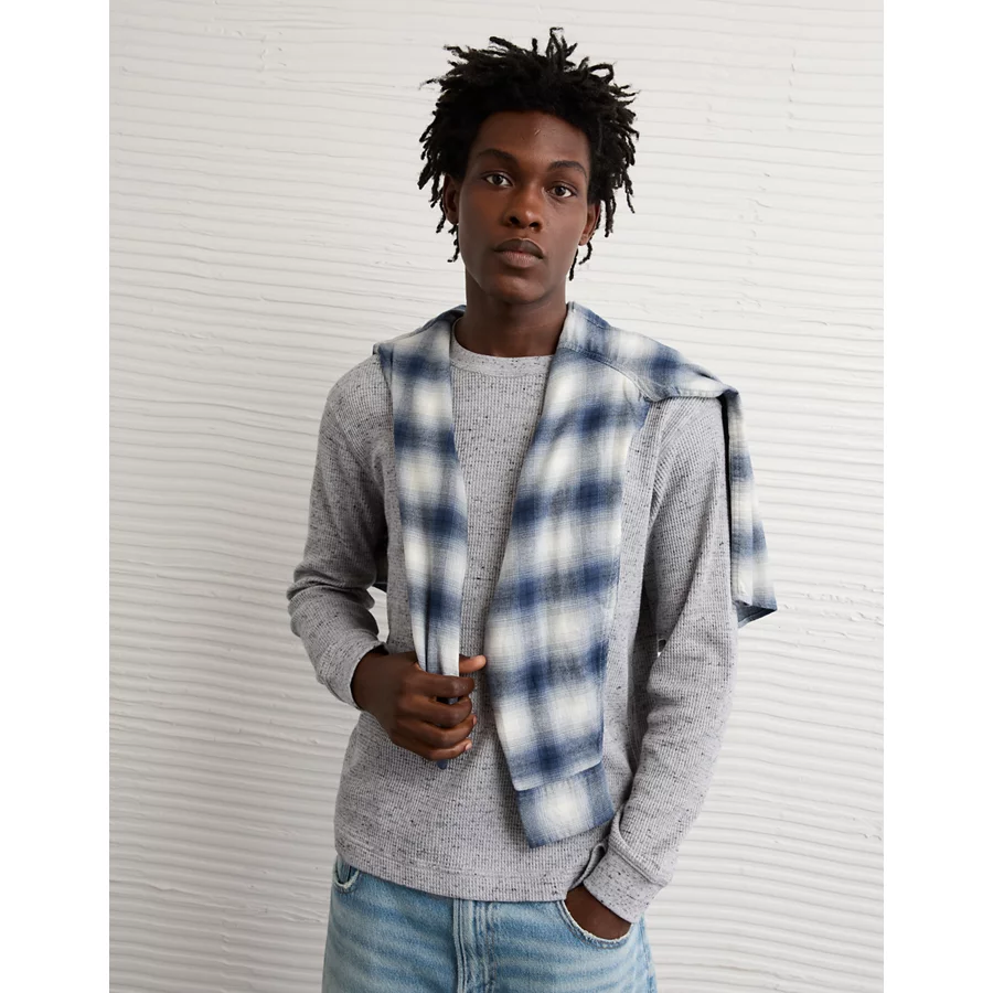 AE Cozy Waffle Thermal T-Shirt – Medium Heather Gray