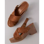 AE Criss-Cross Wedge Clog – Amber Brown