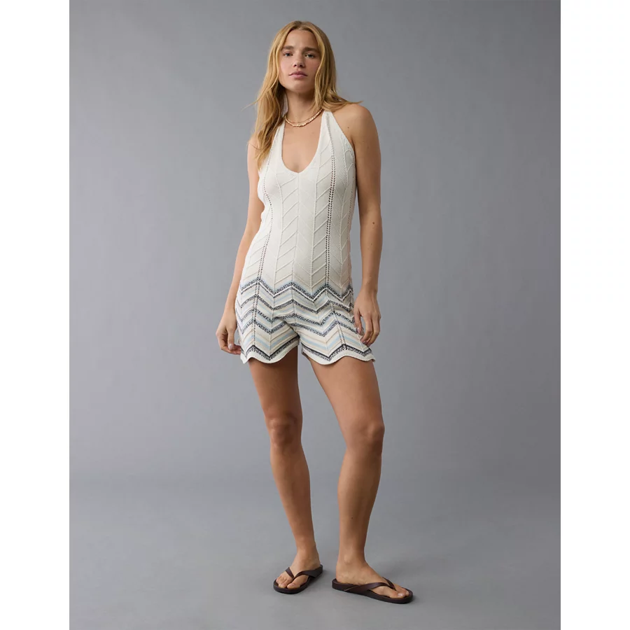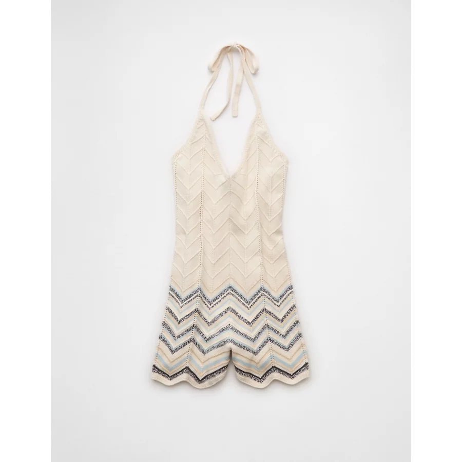 AE Crochet Halter Romper – Brown