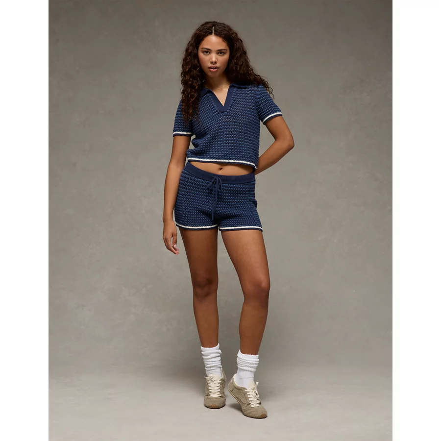 AE Crochet Sweater Striped Short – Midnight