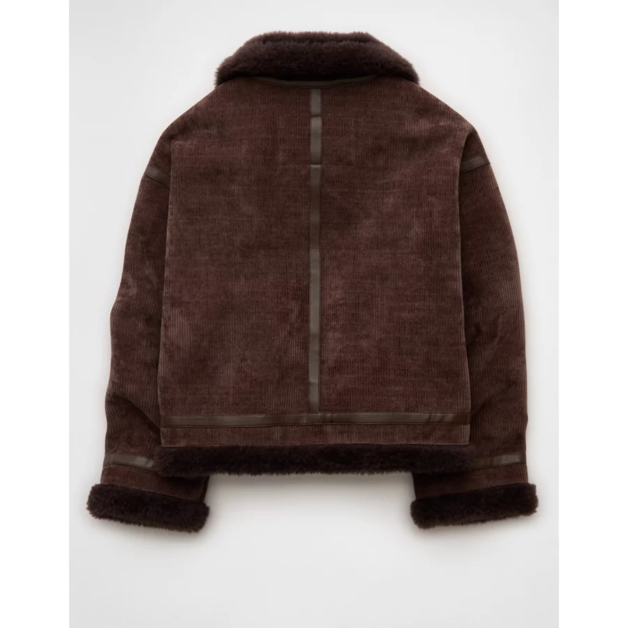 AE Cropped Corduroy Bomber Jacket – Brown