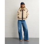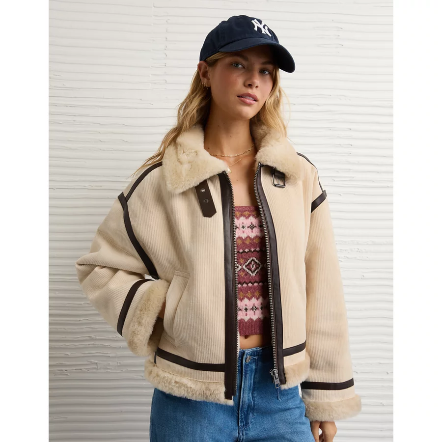 AE Cropped Corduroy Bomber Jacket – Cream