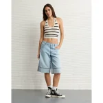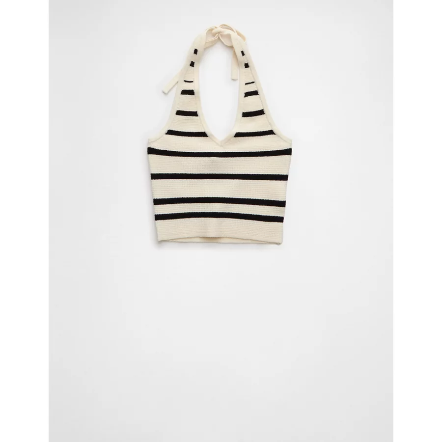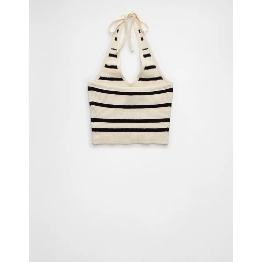 AE Cropped Striped Sweater Halter Top – Cream