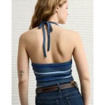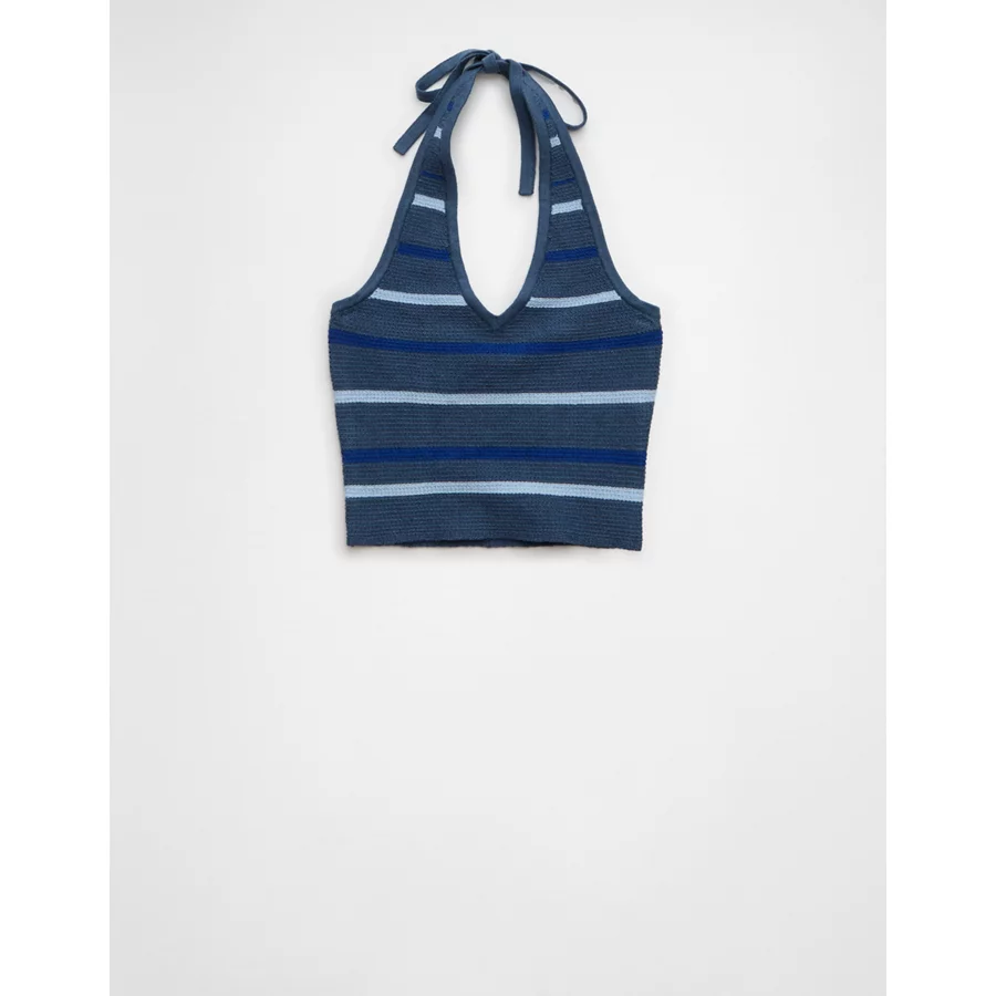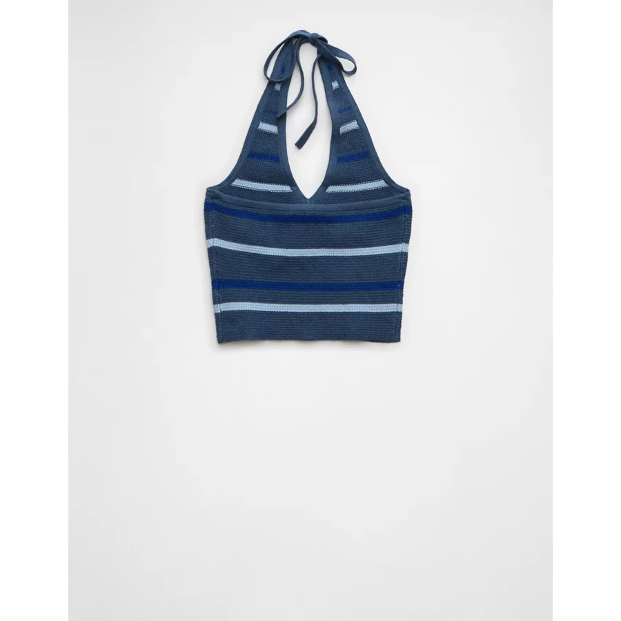 AE Cropped Striped Sweater Halter Top – Navy