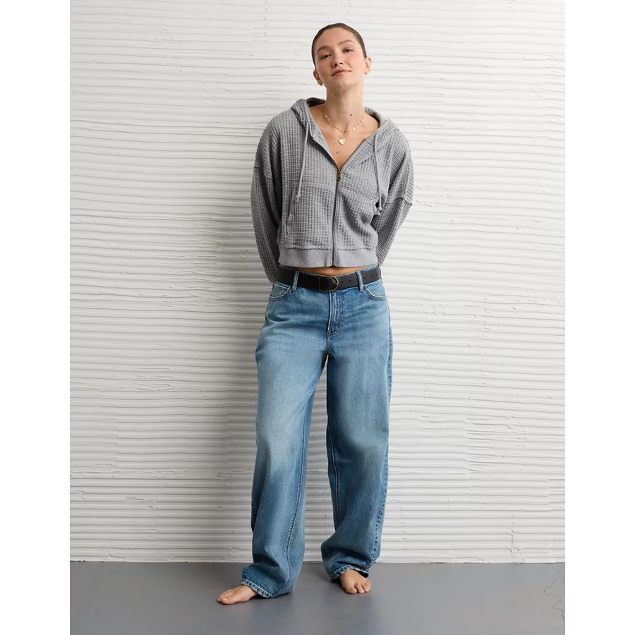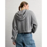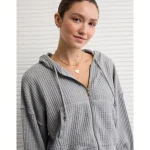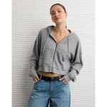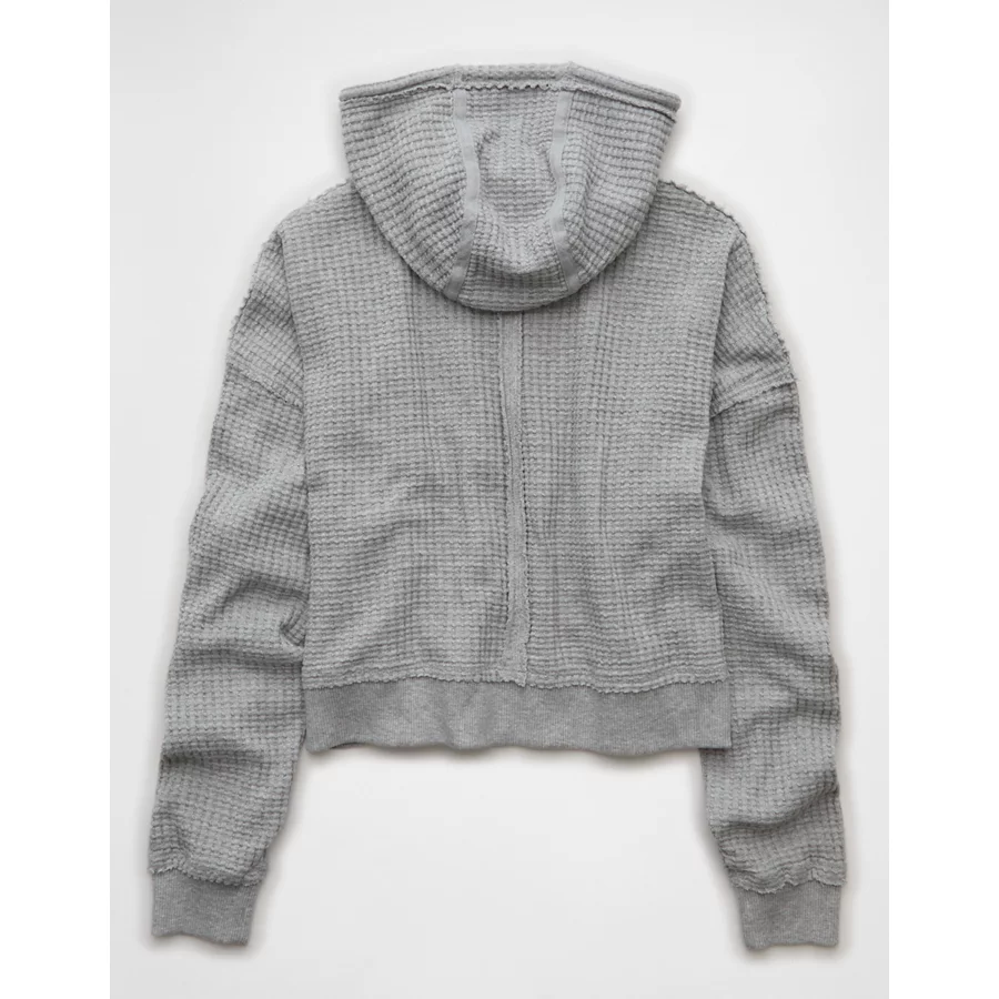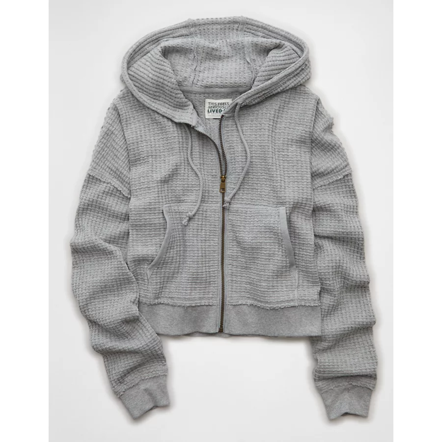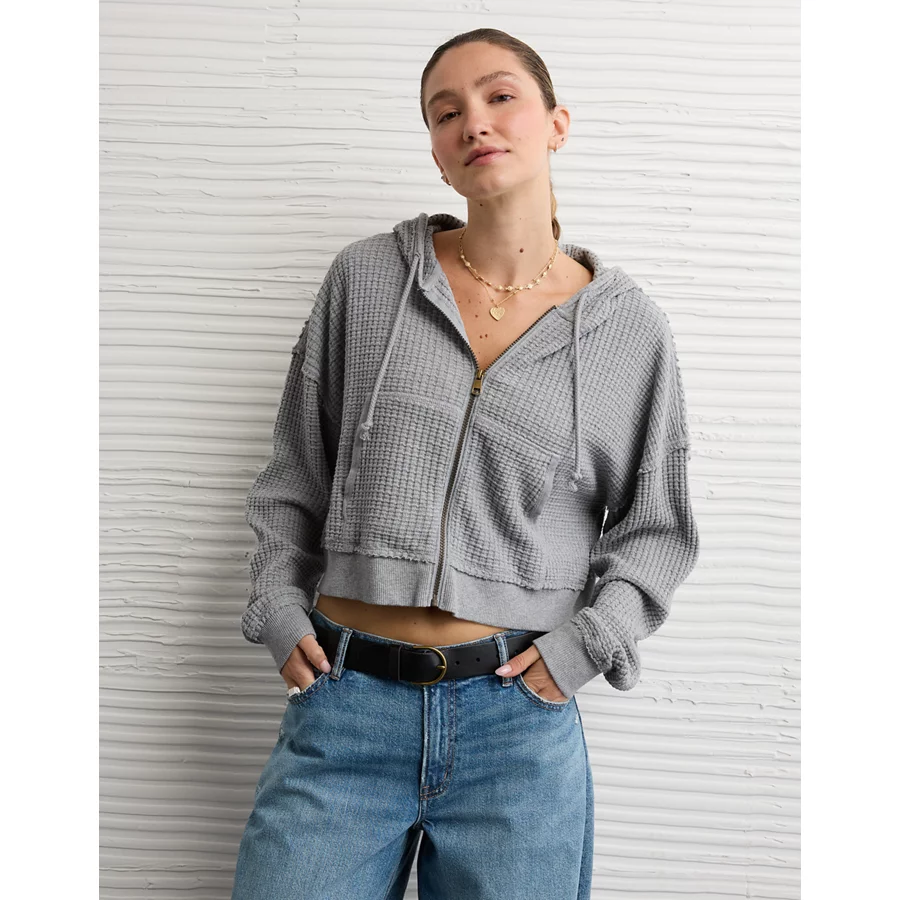 AE Cropped Waffle Zip-Up Hoodie – Medium Heather Gray