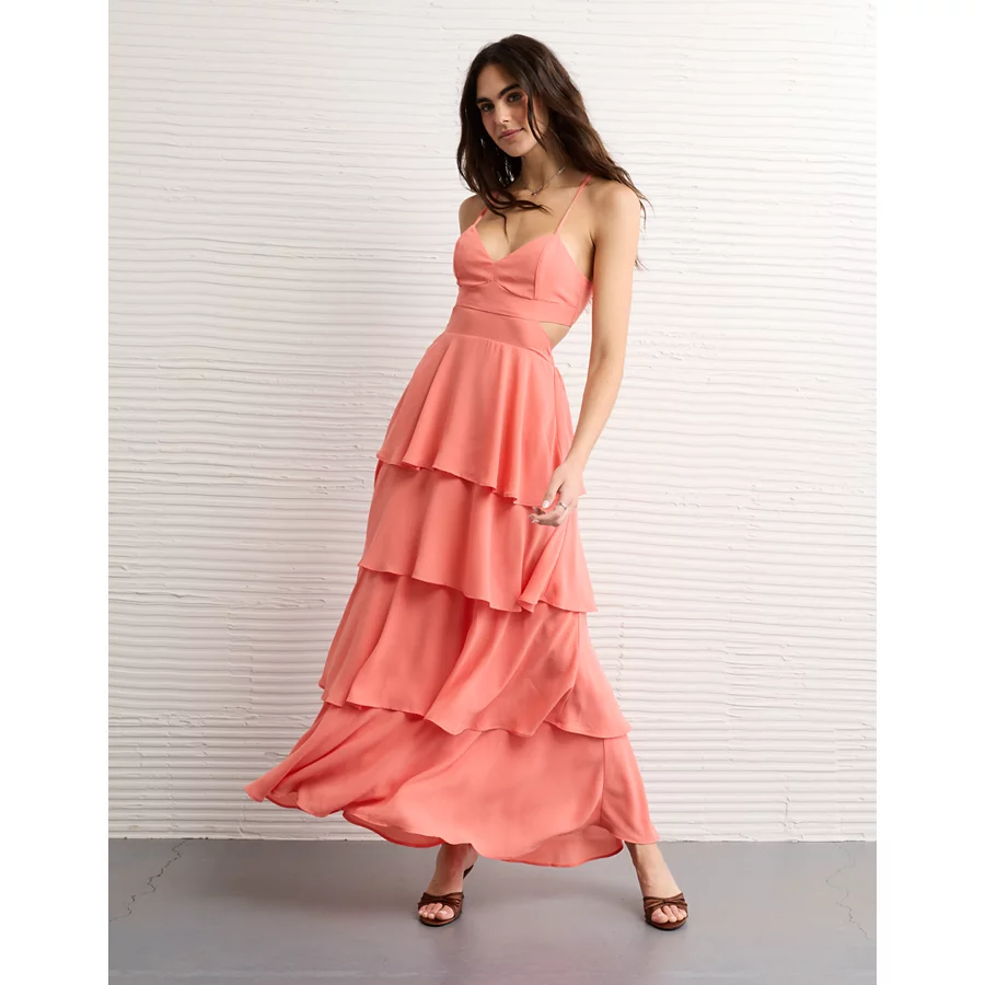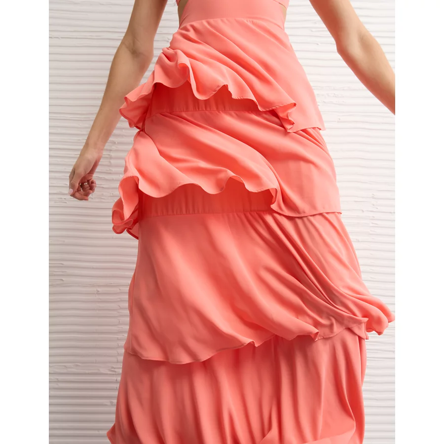 AE Asymmetrical Ruffle Maxi Slip Dress – Lime