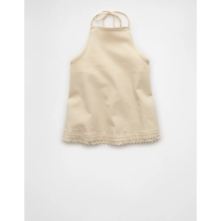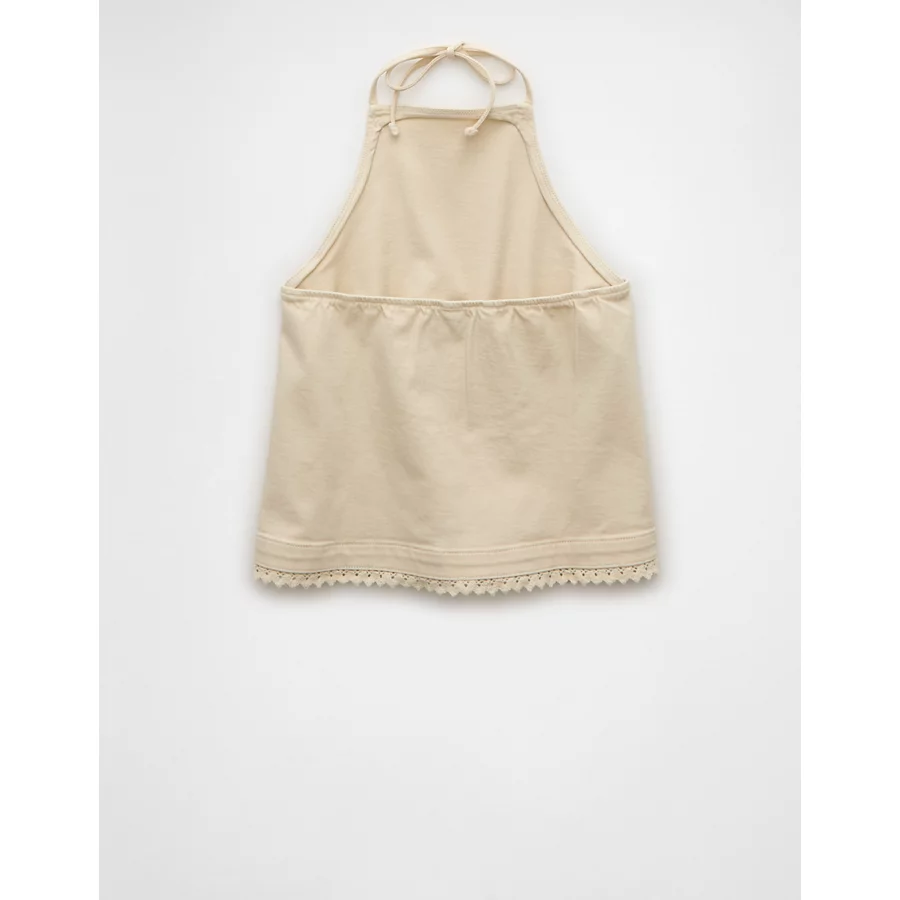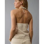 AE Denim Crochet Halter Top – Cream