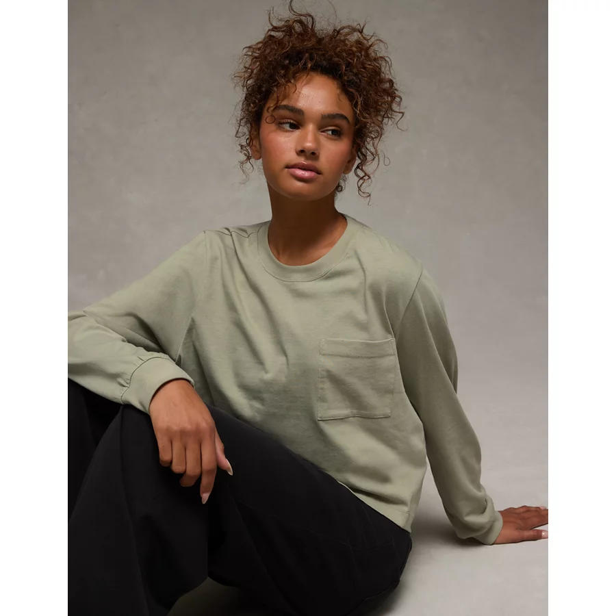 AE Everyday Luxe Long Sleeve T-Shirt – Faded Olive