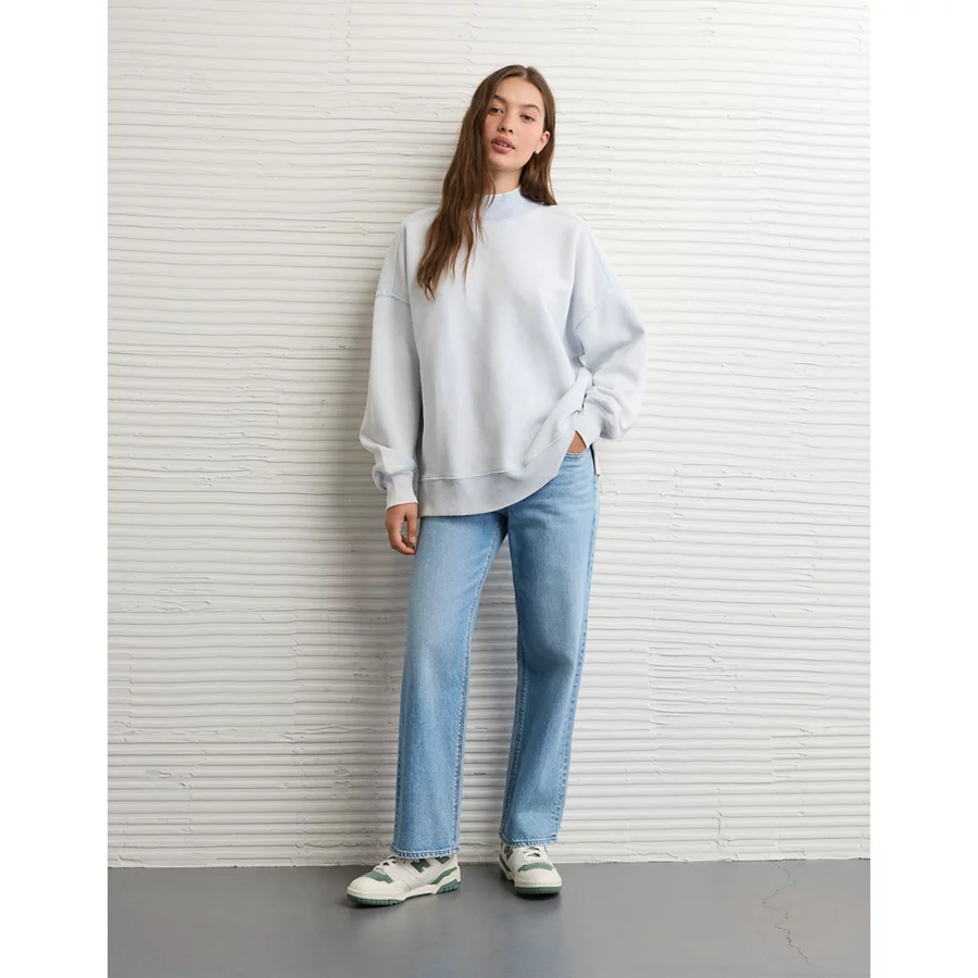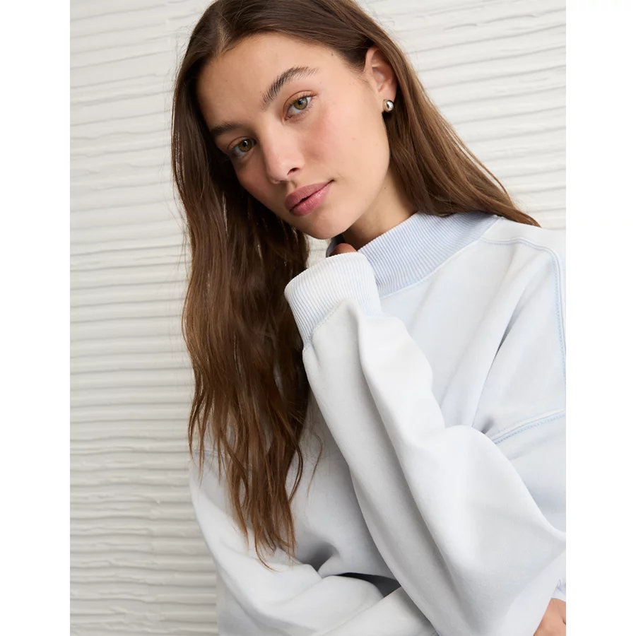 AE Everyday Luxe Mock Neck Sweatshirt – Light Blue