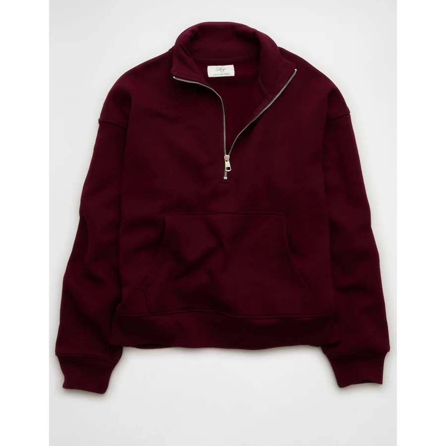 AE Everyday Luxe Quarter-Zip Sweatshirt – Preppy Red