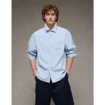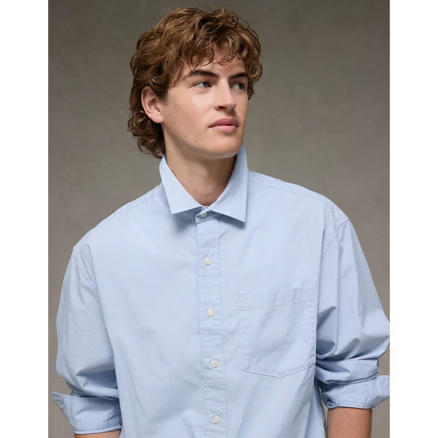 AE Everyday Relaxed Fit Poplin Button-Up Shirt – Blue