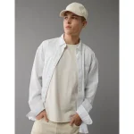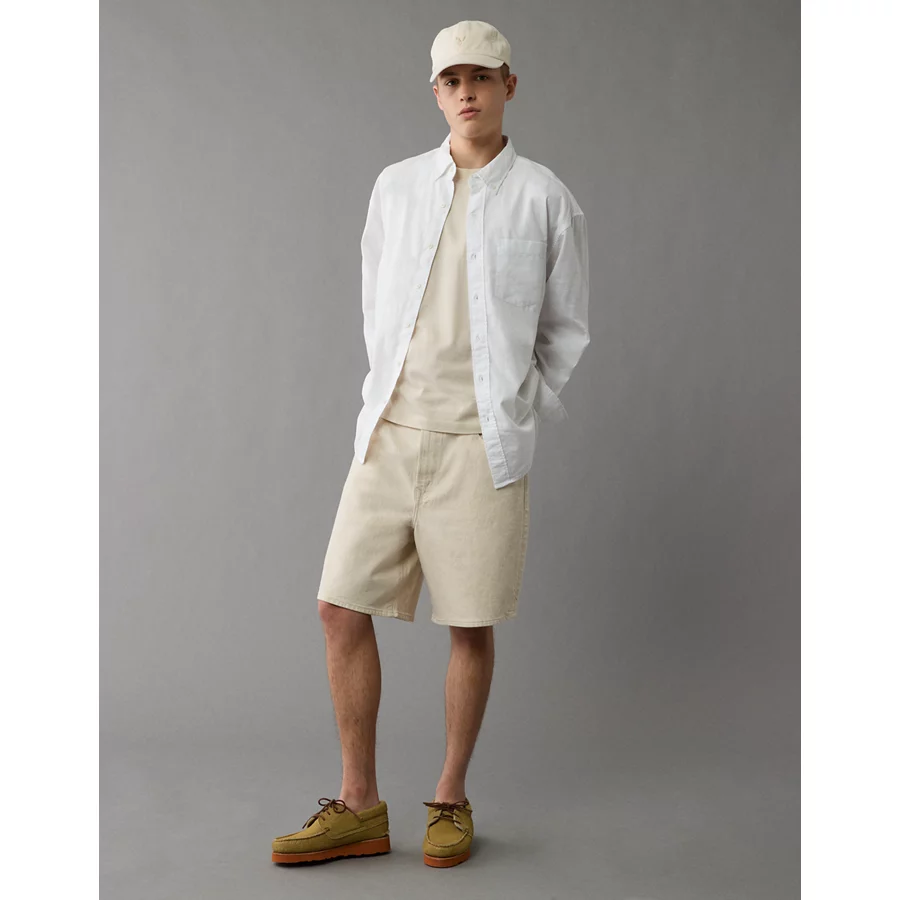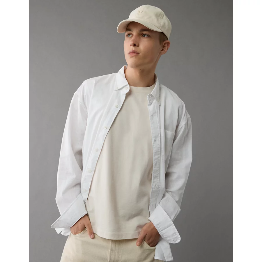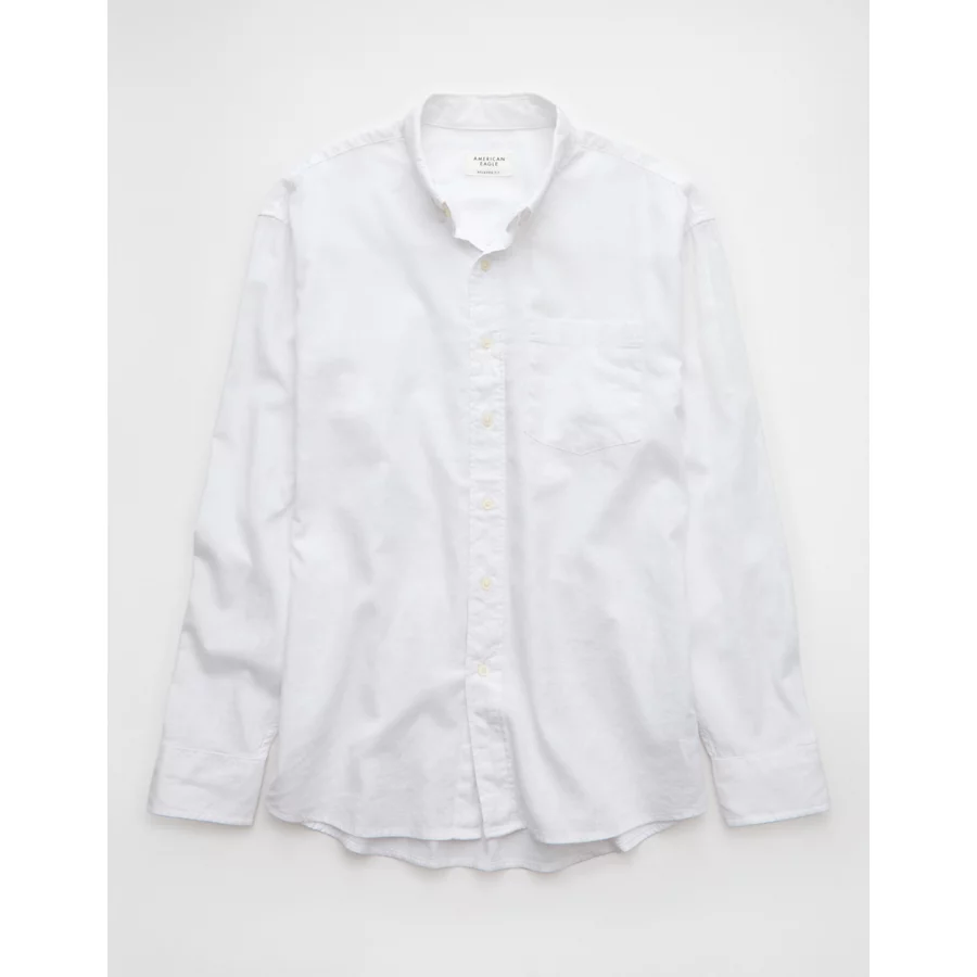 AE Everyday Relaxed Linen-Blend Button-Up Shirt – White