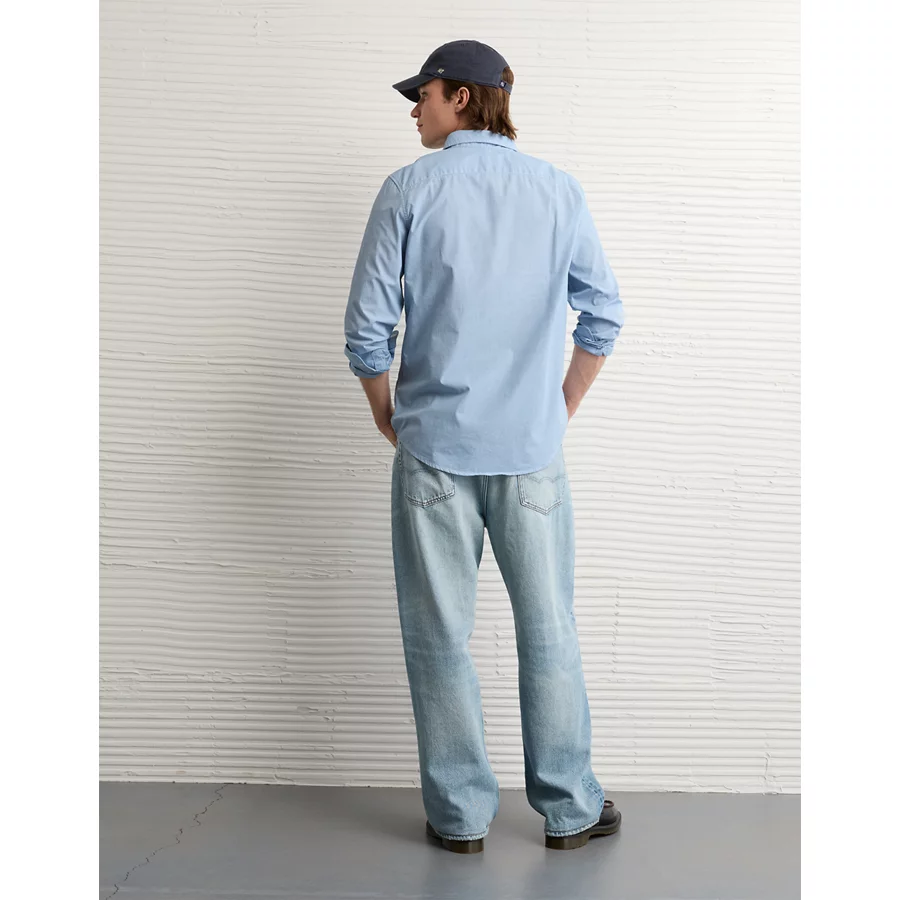 AE Everyday Slim Fit Poplin Button-Up Shirt – Blue