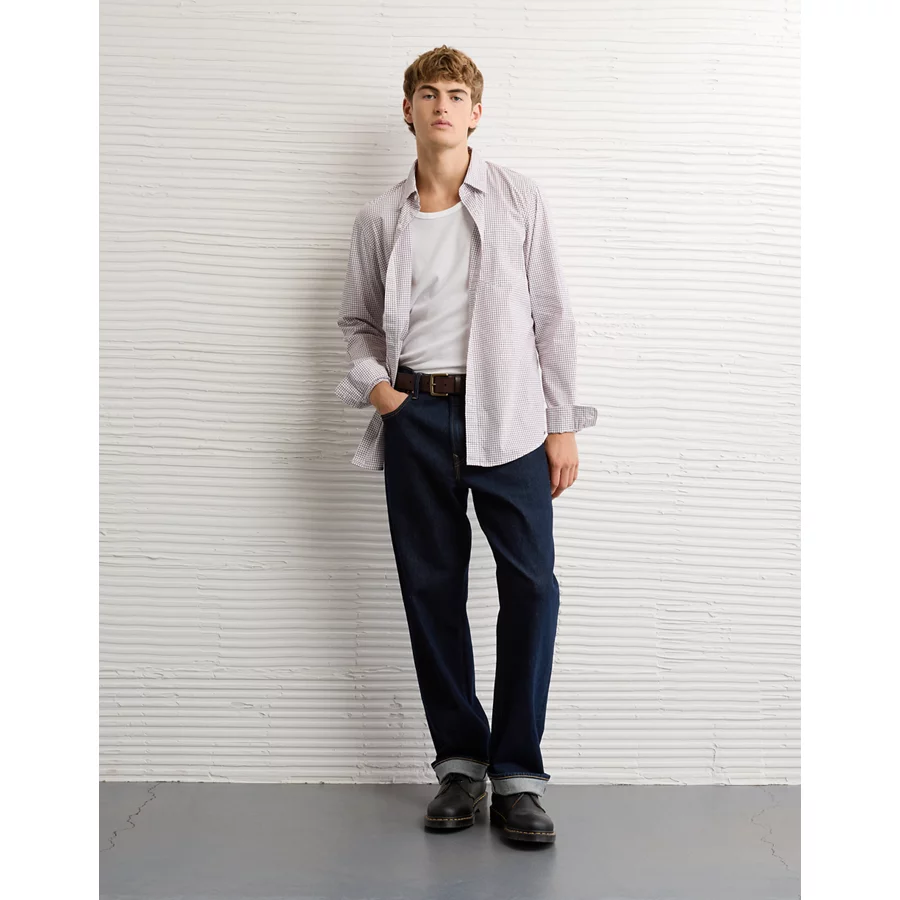 AE Everyday Slim Fit Poplin Button-Up Shirt - Blue