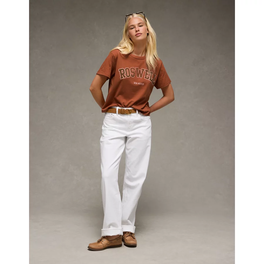 AE 8″ Dreamy Drape Stretch Low-Rise Baggy Jort – White