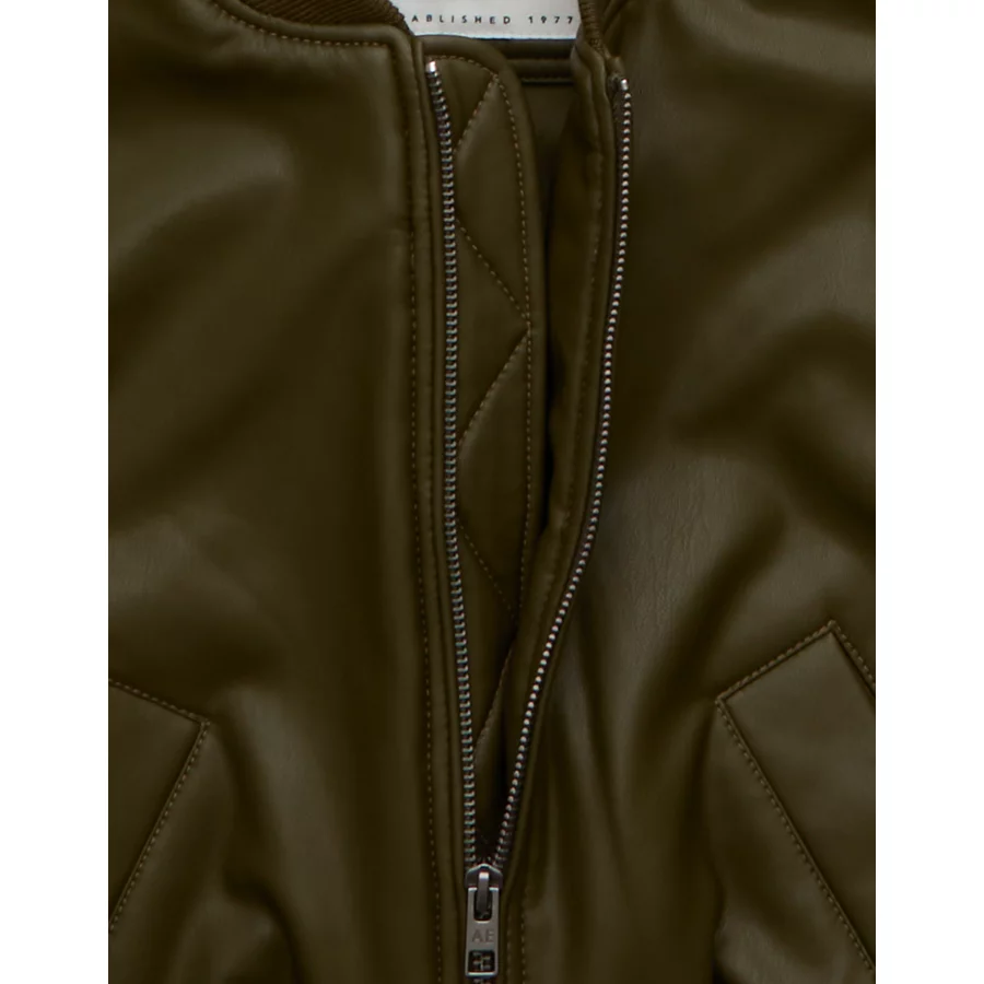 AE Faux Leather Cropped Bomber Jacket – Olive