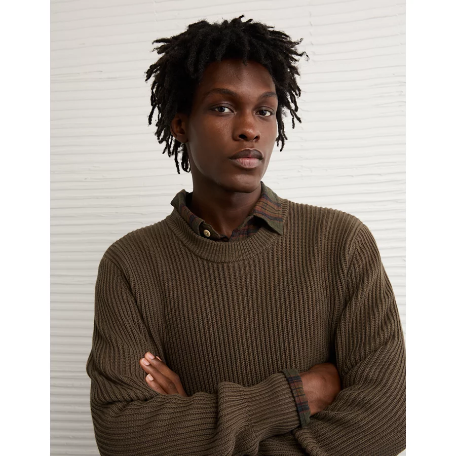 AE Fisherman Crew Neck Sweater – Camo Green