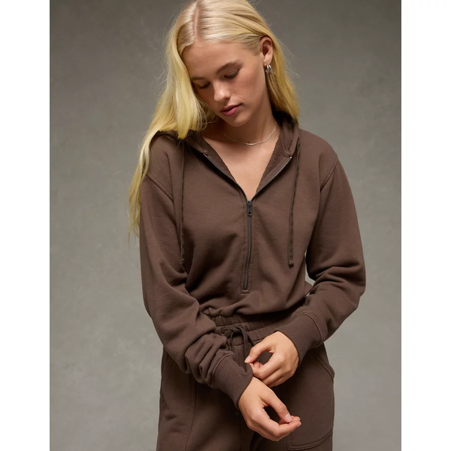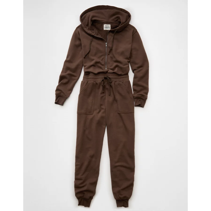 AE Fleece Hoodie Jumpsuit – Coffee