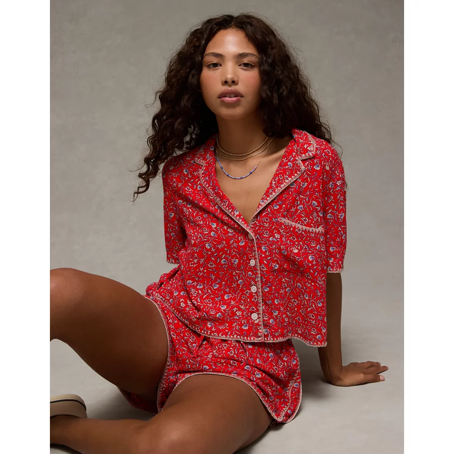 AE 8″ Dreamy Drape Stretch Low-Rise Baggy Jort – Medium Bright Indigo
