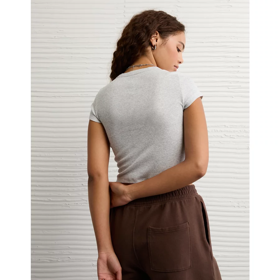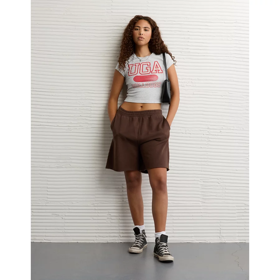 AE Georgia Bulldogs Graphic Cropped Baby Tee – Light Faded Gray