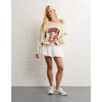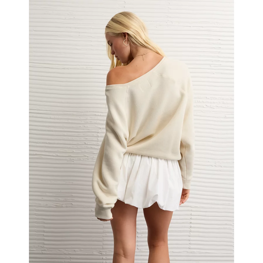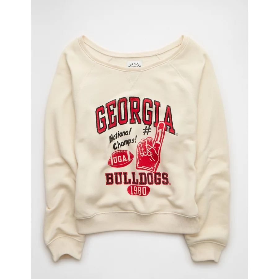 AE Georgia Bulldogs Graphic Off The Shoulder Sweatshirt – Frosty Cream