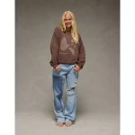 ABO Snoopy Fall Leaves Plush PJ Shirt – Brown