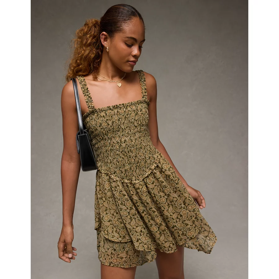AE Handkerchief Hem Ruffle Floral Mini Dress – Yellow