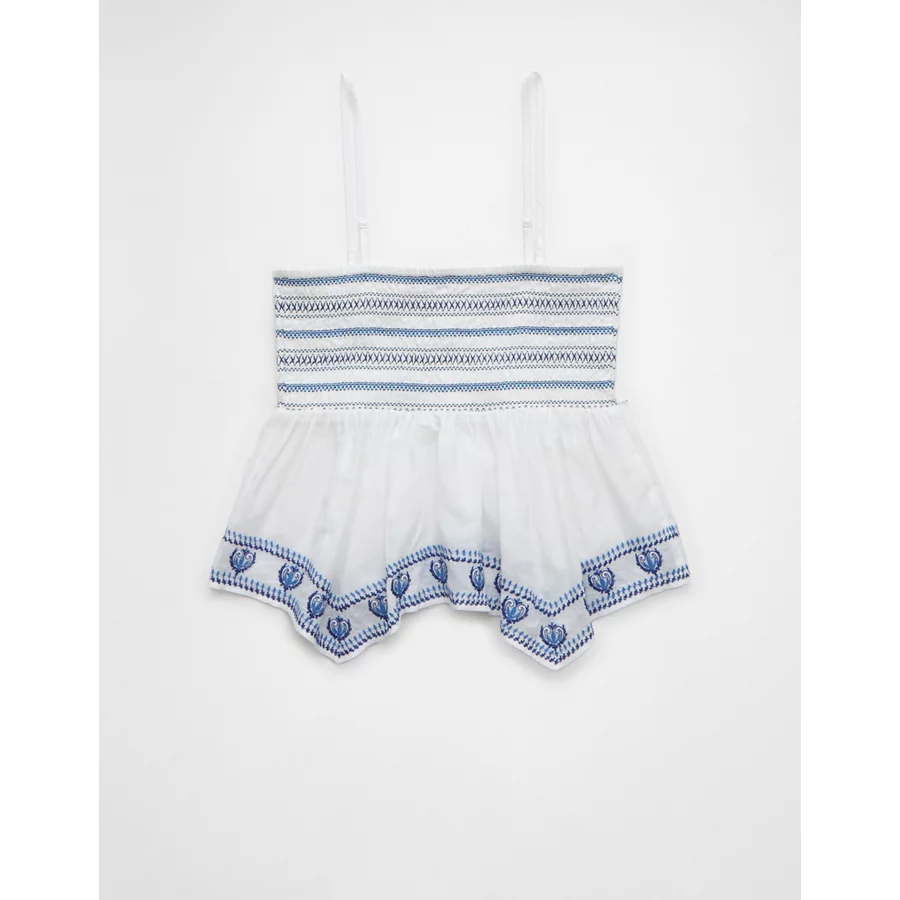 AE Handkerchief Hem Smocked Babydoll Tube Top – Blue