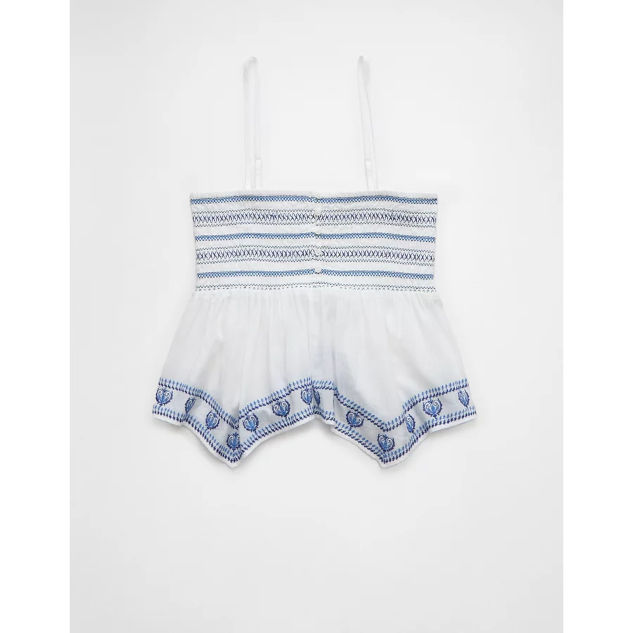 AE Handkerchief Hem Smocked Babydoll Tube Top - Cream