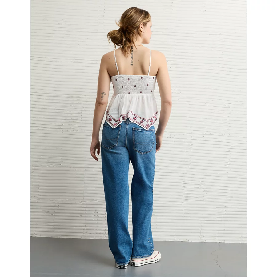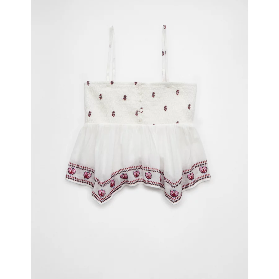 AE Handkerchief Hem Smocked Babydoll Tube Top – Cream