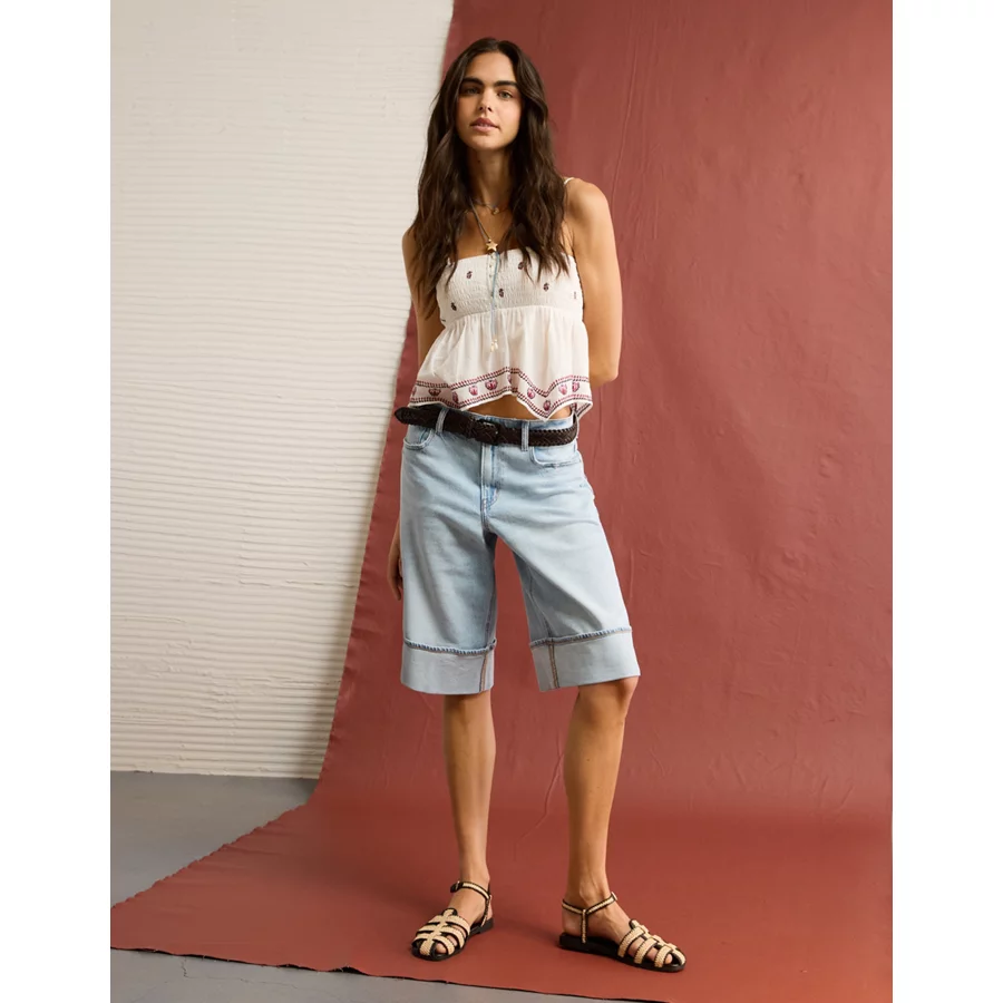 Button-up front | Handkerchief hem with embroidered trim