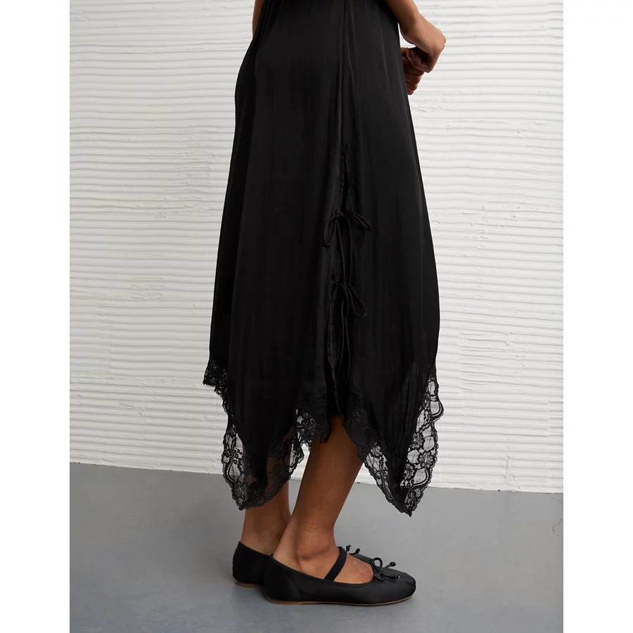 AE Handkerchief Hem Tie Side Midi Slip Dress – Black