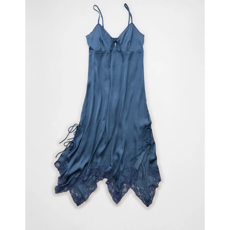 AE Handkerchief Hem Tie Side Midi Slip Dress – Navy