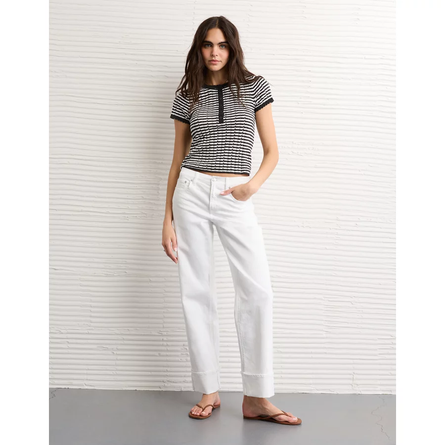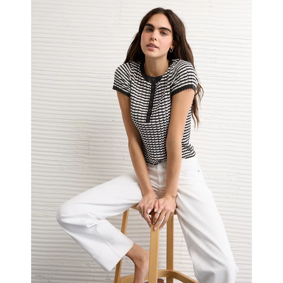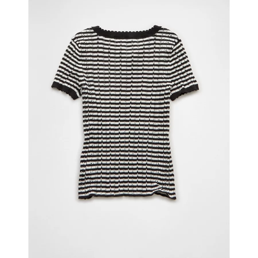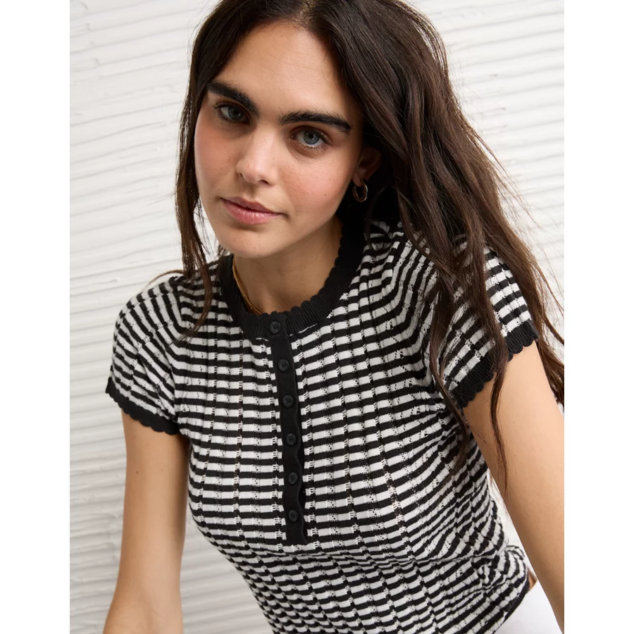 AE Henley Pointelle Sweater T-Shirt – Black Stripe