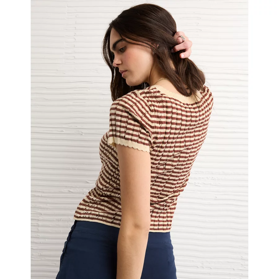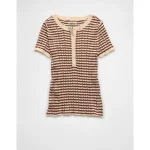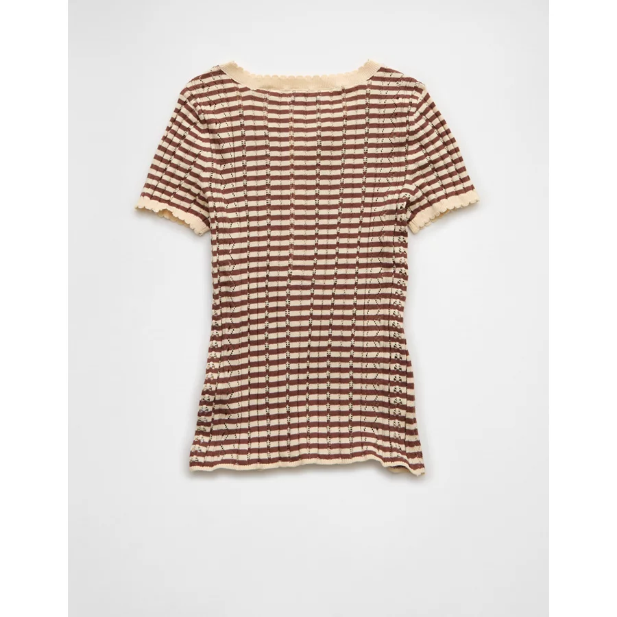 AE Henley Pointelle Sweater T-Shirt - Brown