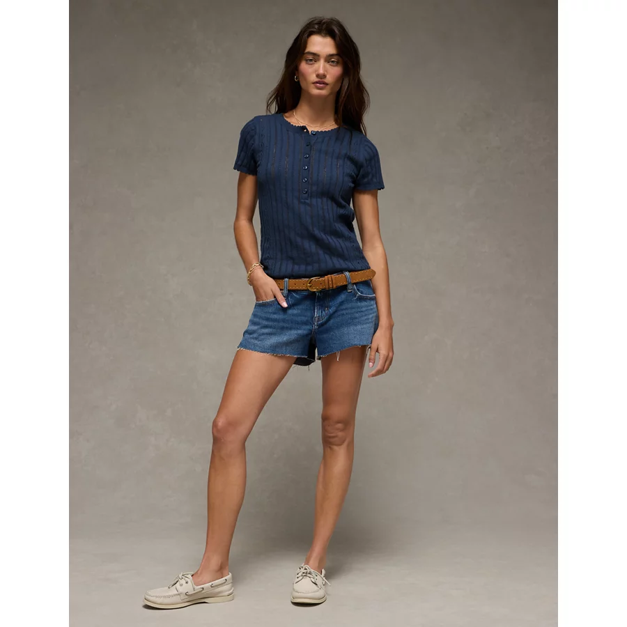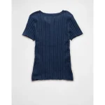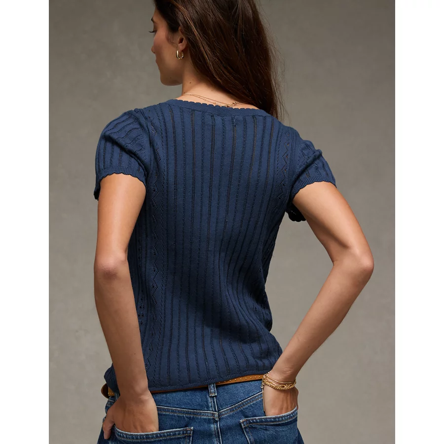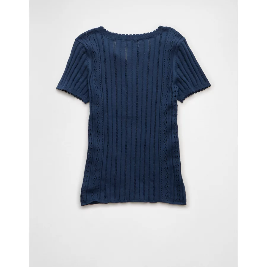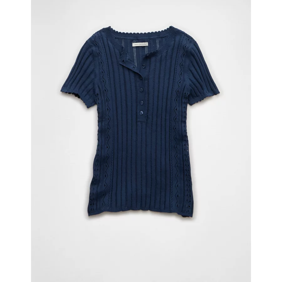 AE Henley Pointelle Sweater T-Shirt – Navy
