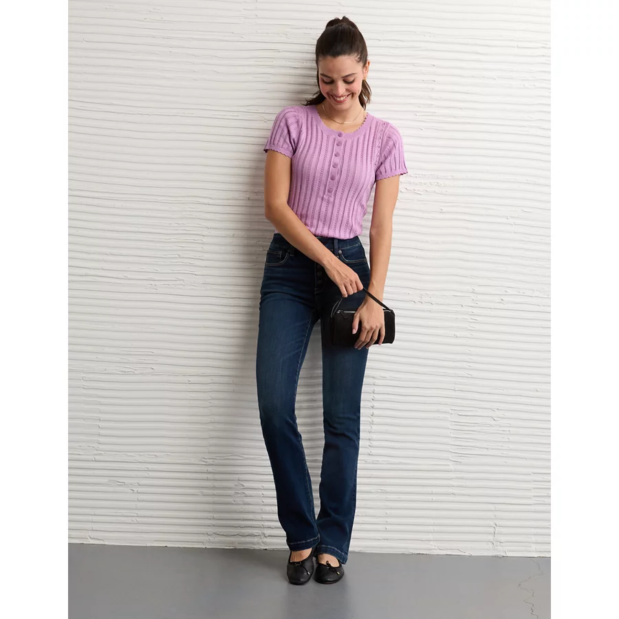 AE Henley Pointelle Sweater T-Shirt – Purple