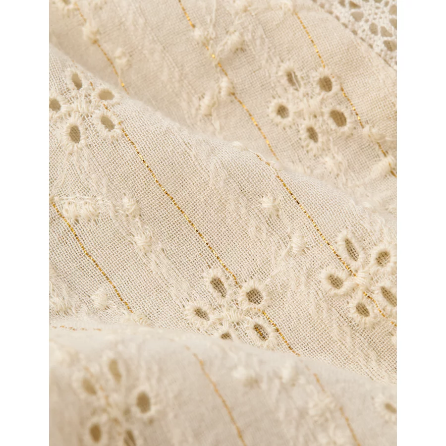 Lacey fabric with metallic gold thread details